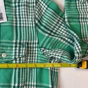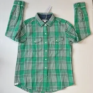 Casual button-down with a green checkered pattern. Features dual chest pockets. Ideal for everyday wear.never worn. MSRP $168