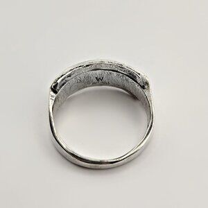 Marked “W” and tested as sterling, this size 8.75 ring weighs 6 grams. The design measures approximately 1" long and 0.5" wide, creating a bold yet elegant statement piece. In excellent vintage condition, with minimal wear consistent with age.