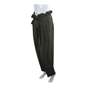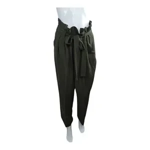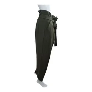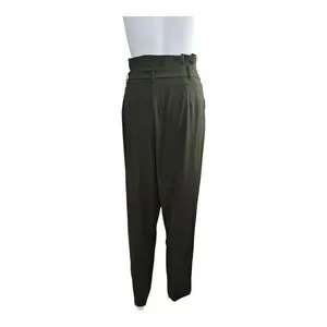 Stylish Rachel Roy olive green paper bag waist pants, featuring a high-waisted design with a self-tie belt. These pants are both comfortable and fashionable, perfect for a casual yet chic look. Excellent pre-owned condition with no visible flaws.