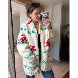 **SOLD** Knit Mary Maxim Cowichan Cream Ski Theme Wool Sweater unisex