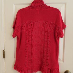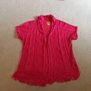 Bohemian Bright Rose-pink crocheted Ruby Rd. open front short-sleeve car…
