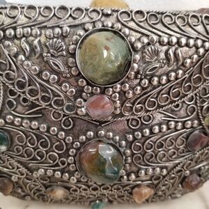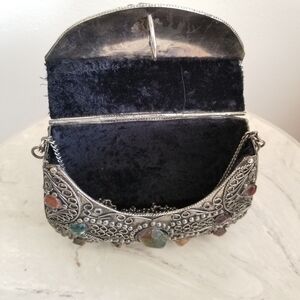 Vintage Sajai Metal Purse with Natural Agate Stones – Filigree Minaudière