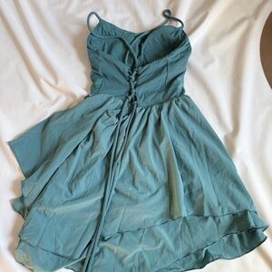 HALARA Teal Spaghetti Strap Dress