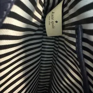 Stylish bag with black and white striped interior. Signature Kate Spade design.
