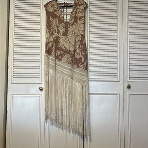 Floral Fringe Dress in Brown and Cream