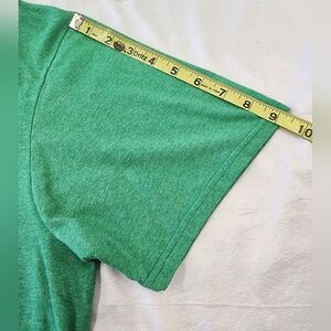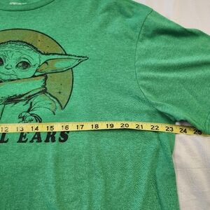 Green t-shirt featuring a Yoda graphic with the text 'I'm All Ears'. no rips, holes, stain, snags, tears. 50% COTTON, 50% POLYESTER. made in Honduras.