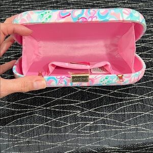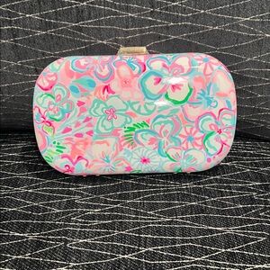 Lily Pulitzer hard side clutch. It does not have the chain to go with it, but the plastic is still on the clasp.