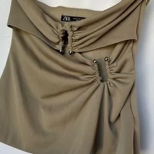 Zara Olive Green Crop Top Dressy Strapless XSmall