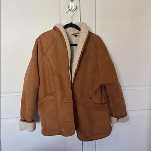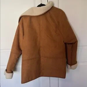Warm cream jacket with soft shearling lining. Features a stylish design.