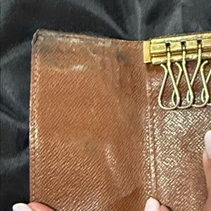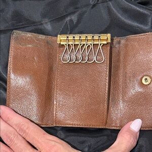 Elegant key case with classic monogram. Features rich brown and gold tones. Perfect for everyday use. Preloved and tons more life to live! Hoping for her to live on with someone else. Please see pictures for wear.