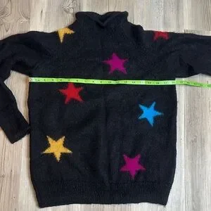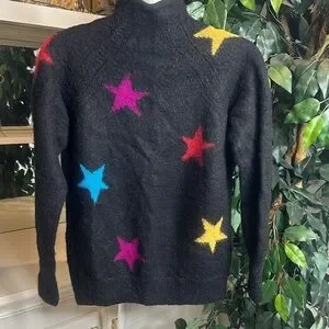 EUC Veda 100% Alpaca Wool Black Sweater with Multicolored Stars, M
