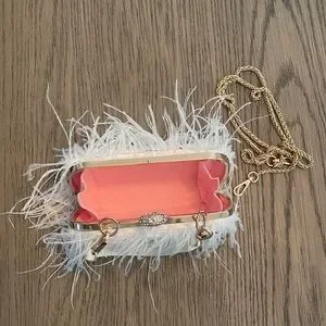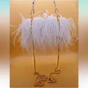 This elegant white feather clutch adds a touch of sophistication to any outfit. Perfect for evening events and special occasions.