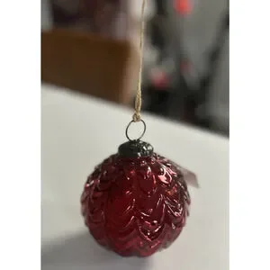NWT Pottery Barn Red Oversized Embossed Sphere Red Ball Ornament Mercury Glass