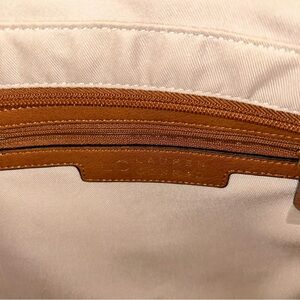 Used once, briefly, before putting away in closet and never used again. There is still a cover on the inner compartment zipper pull. Clean, gorgeous purse. This is the large cookie purse, and ladies, raffia bags are back in. If you want to try one out for a reasonable price, grab this bag.