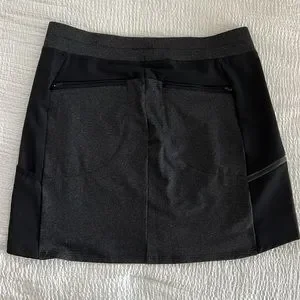 Stylish charcoal and black skirt. Features zippered pockets. Perfect for casual wear.