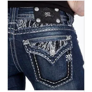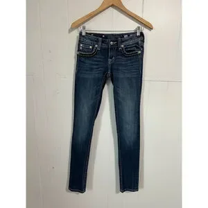 Women's Miss Me Jeans Size 26 Dark Blue with White Stitching