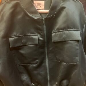 Woman’s 3 Piece Satin Set includes Satin Buster Top Lg, Satin Button Up Bomber Jacket XL and Satin Cargo Pants with Pockets Lg NWT