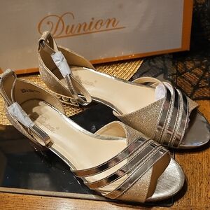 Elevate your look with these dazzling gold glitter heels from . Featuring a unique pearl-accented heel, these shoes are perfect for adding a touch of elegance to any outfit.