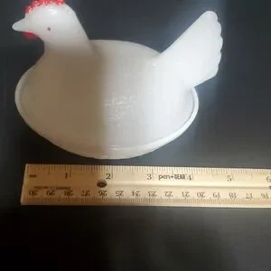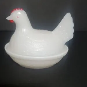 Charming white hen on a nest dish. Perfect for decor or storage. 4 inches tall 4 1/2 inches wide. smoke free home.