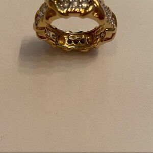 CAMROSE & KROSS SIGNED JBK COLLECTION JACQUELINE BOUVIER KENNEDY REPLICA RING 24k GOLD ELECTROPLATE 925 STERLING SILVER 18 CUBIC ZIRCONIAS SIZE 8