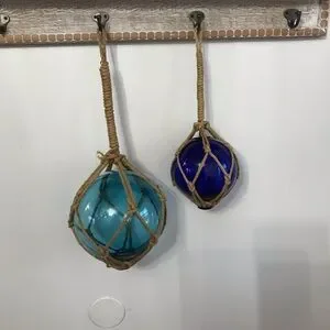 Glass Buoys Turquoise and Cobalt Blue Approximate Circumference 17” 21”