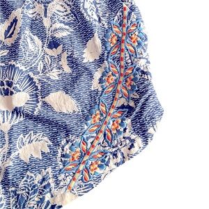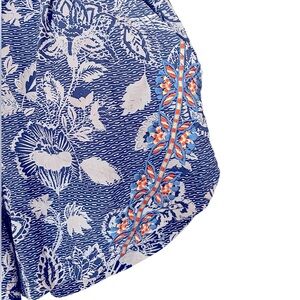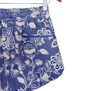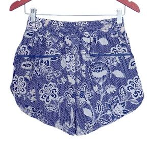 Stylish blue athletic shorts. Features floral pattern. Comfortable fit.