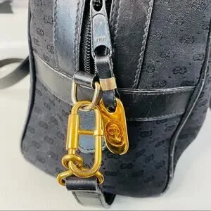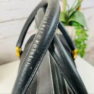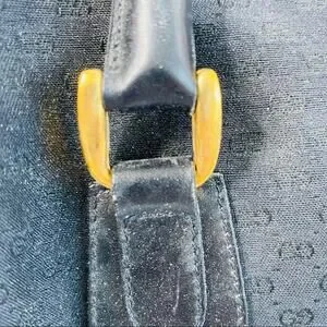 Amazing vintage black on black Gucci Boston satchel with the original detachable cross body strap included in GG logo black jacquard supreme fabric body and black leather trim.
