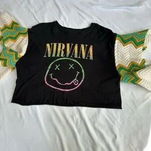 PENNY LANE REWORKED NIRVANA TEE W/CROCHETED SLEEVES