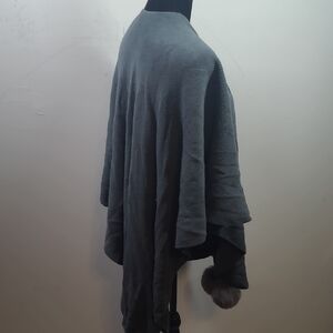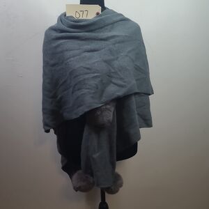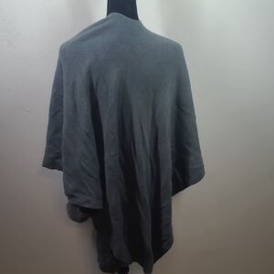 Elegant gray shawl featuring soft faux fur trim. Perfect for adding a touch of luxury to any outfit.