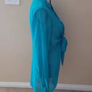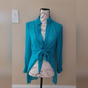 Bar III Teal Tie-Front Blouse/cover up