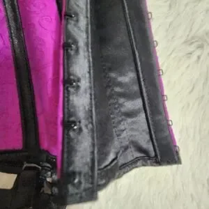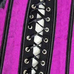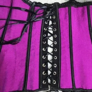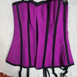Listing as size medium, 24-26 inches around, 16 inches long. Adjustable lace front, hook-n-eye full length of back. Boning helps keep in place, beautiful jaquared fabric. Barely worn condition.