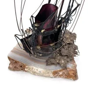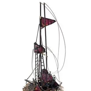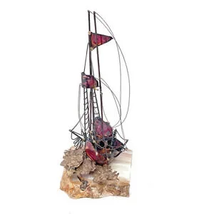 Vintage Nautical Decor Sculpture Copper Metal Sailboat On Marble Stone Base