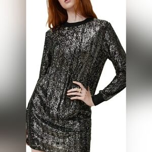 AllSaints, AllSaints Dress, AllSaints Sequin Dress, Designer Dress, Black Sequin Dress, Metallic Dress, Long Sleeve, Sparkle Dress, Party Dress, Cocktail Dress, Holiday Dress, Night Out Dress, Glam Dress, Shimmer Dress, Statement Dress, Club Dress, Date Night Outfit, Trendy Dress, Luxury Fashion, Event Wear, New Year’s Eve Dress, Christmas Party Dress, Modern Style, Chic Black Dress