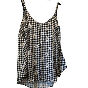 Torrid Stretch Challis Plaid Daisy Print Ava Cami Tank Top Black Size 00 M/L