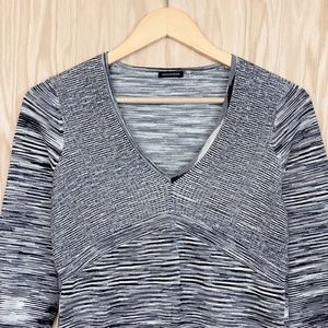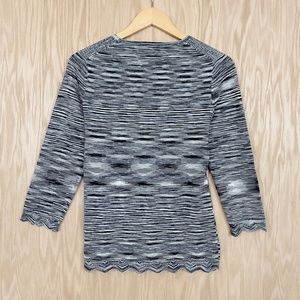 Magaschoni Women’s Space Dyed 3/4 Sleeve Silk Blend V-Neck Scalloped Hem Top