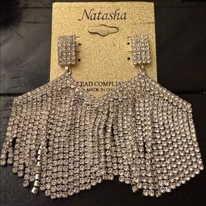 Elegant Nastasia earrings set featuring green, silver, and pink accents. Perfect for any occasion. Thank you for looking . Please feel free to send an offer.