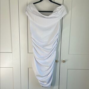 Abercrombie & Fitch White Off-Shoulder Twisted Ruched Dress | L