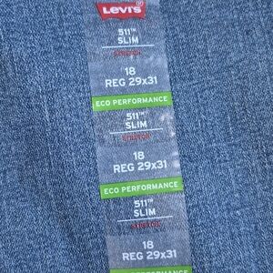 Levi's 511 Slim Stretch For Juniors Jeans Size 18 Regular W29 X L31 Color Light Blue Length measures 41 inches, Inseam 31 inches. Completely new. Adjustable