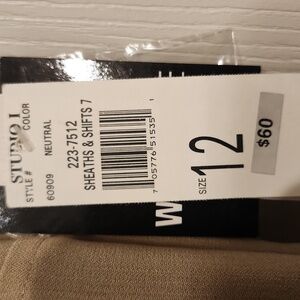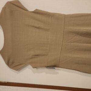 This elegant Studio One tan dress features a stylish button-front design, with cap sleeves is a classic dress.