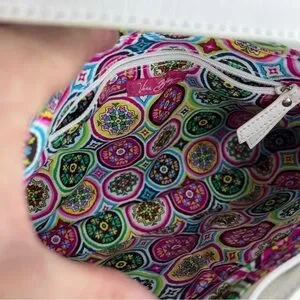 Elevate your style with this stunning Vera Bradley Floral Paisley Shoulder Bag. Perfect for women who love fashionable accessories, this limited edition bag features a colorful floral and paisley pattern that adds a touch of elegance to your outfit. The shoulder bag is made of high-quality leather and cotton, making it durable and long-lasting.