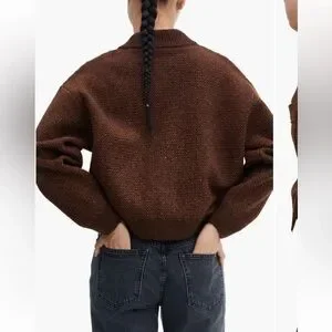 Brown cardigan from Mango. Good quality thick sweater. Elevates any outfit. Worn maybe 2 times. Perfect condition. The description from Nordstrom where I bought it says "snap closure" but it's buttons I'm 5'10", A cup, and 145lbs
