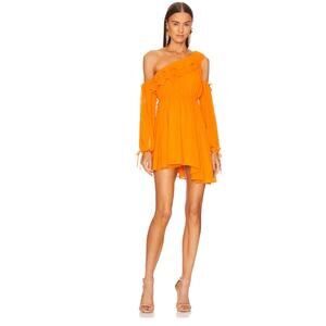 Michael Costello x REVOLVE Everett Orange Ruffle Asymmetric Mini Dress XS