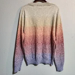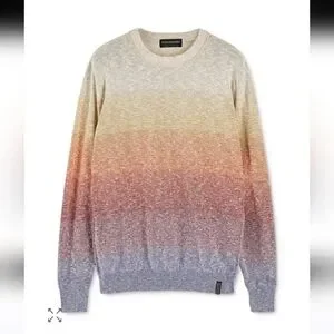 style tags:Scotch Soda, multicolor, ombre sweater, pullover sweater, cozy knitwear, gradient design, casual chic, soft fabric, crew neck, stylish weater, versatile layer, vibrant hues, relaxed fit, fall fashion, winter style