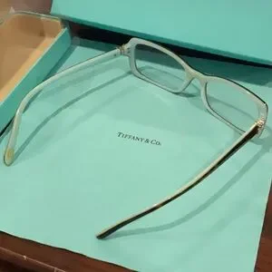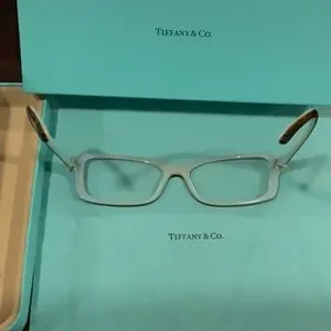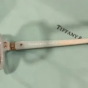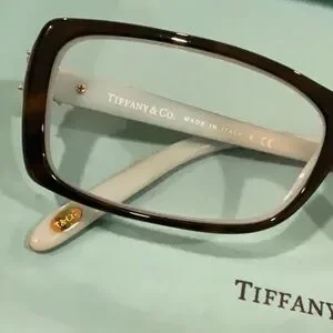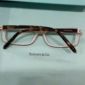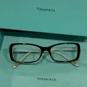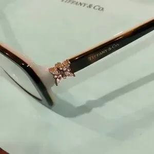 Elegant Tiffany & Co. glasses. Black frame with white arms. Classic and stylish design.