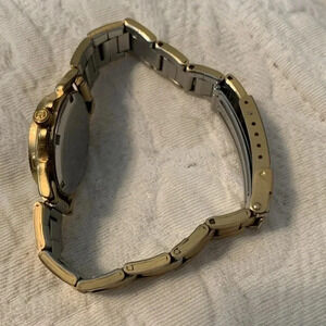 In great overall condition and does have areas of goldtone buffed off showing grey. Stainless Steel. Needs a battery. Pls see photos for details.
