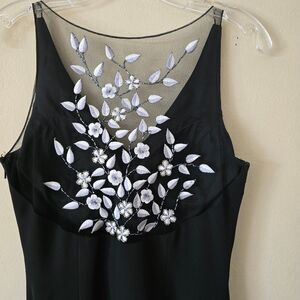 ASPEED Black Embroidered Maxi Dress Embellished Size M Vtg Y2k Prom Glam