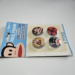 The NEW Paul Frank for Target 4 Julius Monkey Rock Star Guitarist Guitar Pin is a retro collectible pin featuring the iconic character Julius from the Paul Frank franchise. Made in China, this pin set showcases a playful and unique design that is sure to appeal to fans of pop culture and pin collection. Perfect for adding a touch of nostalgia to any outfit or collection, these pins are a must-have for any enthusiast of quirky and fun accessories.