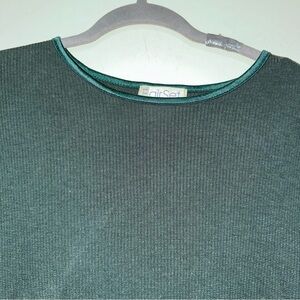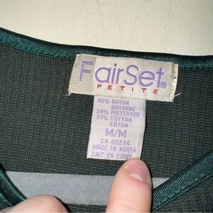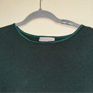 Women’s Vintage Fair Set Brand Dark Green Basic Casual Long Sleeve Shirt Size: Medium. Satin trim around the neck. Definitely fits more like a Large. Very comfortable and a closet staple to have. Trendy colour. Rayon and cotton blend. Great for Christmas and the holidays. Measurements included in photos.