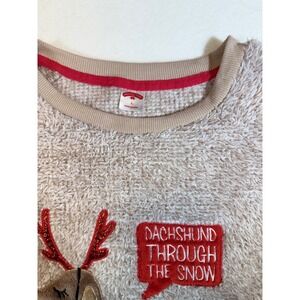 Keywords: Christmas sweater, novelty sweater, dachshund sweater, dog sweater, fuzzy sweater, womens sweater, holiday sweater, crewneck sweater, long sleeve sweater, winter sweater, beige sweater, cute sweater, xmas sweater