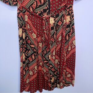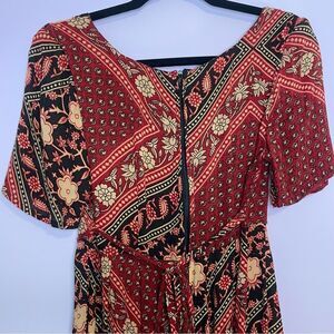 MinkPink Mini Dress Short Sleeve Boho Red Black Floral Patchwork Size Small